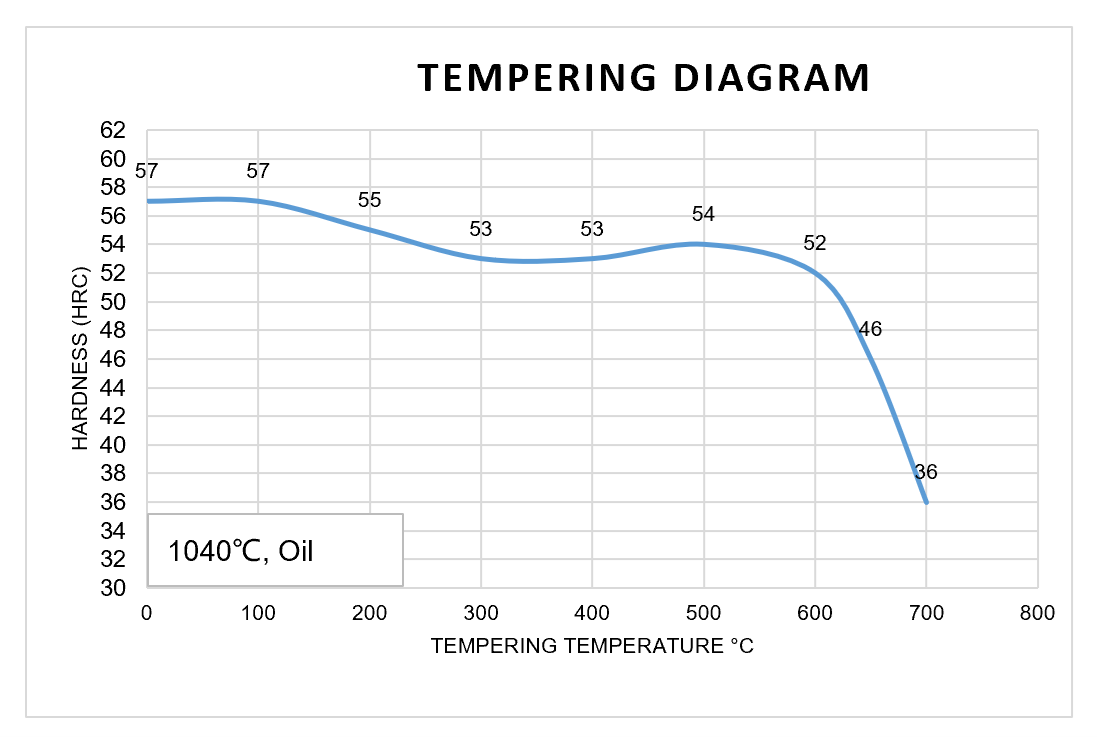 ALTA 1.2367 steel for hardening in oil and in air with very good hardenability, high firmness during the heat and resistance to the tempering, very good toughness and plastic properties during normal and also higher temperatures. Further the steel has a very good resistance to tearing of thermal fatigue and low sensitivity to quick changes of temperature. The steel is appropriate for the heat treatment also for firmness over 1800 N/mm2 and for tools cooled by water. It is well-workable during the heat and well-workable in the soft-annealed state.