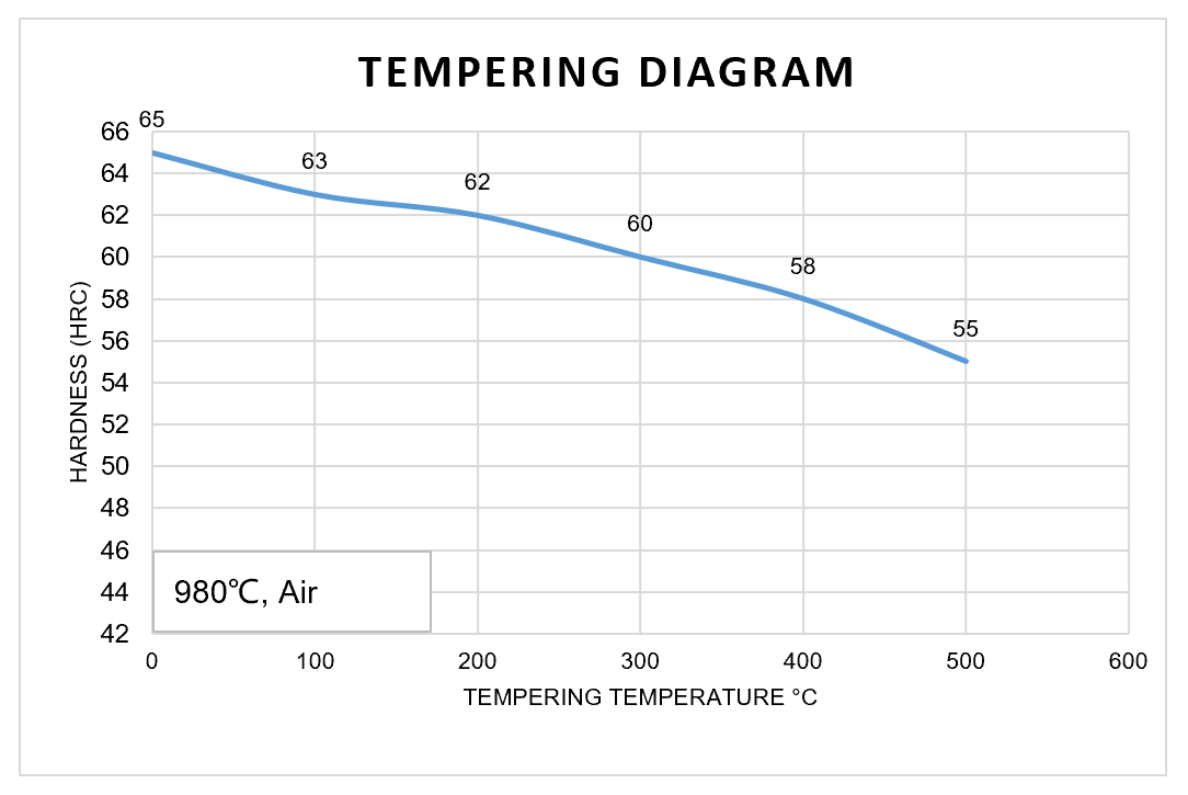 ALTA 1.2436 steel is a high carbon-chromium tool steel (Cr12% version, ledeburite organization). It offers very high abrasive wear resistance which is much better than 1.2080 tool steel. As a high carbon high chromium tool steel ALTA 1.2436 has good through hardening properties and dimensional stability combined with high resistance to tempering.