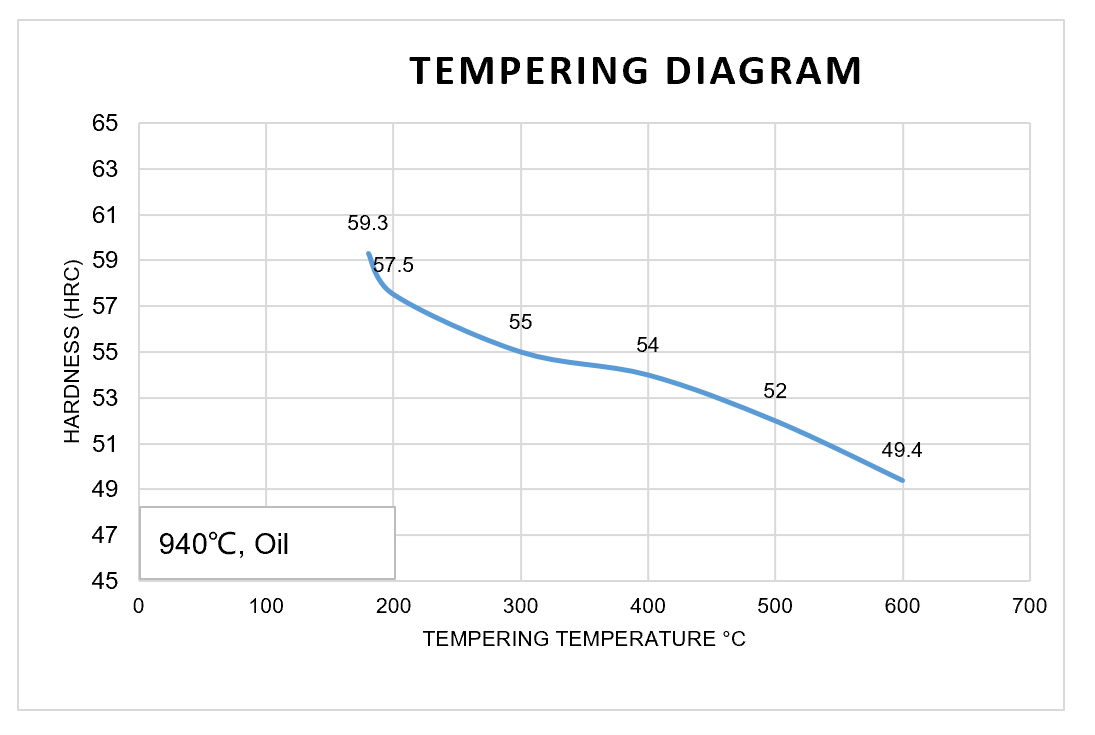 2. The low temperature tempering treatment is air quenching at 930~950℃, tempering at 180~240℃, air cooled, hardness value is 57 - 61 HRC.